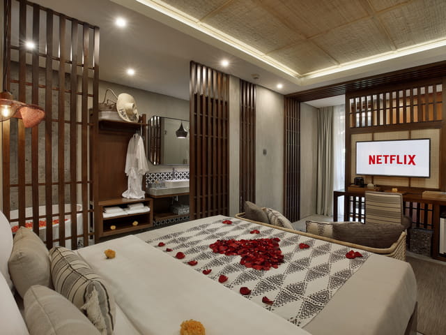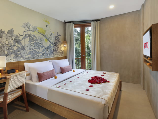 配备一张特大号床和浴缸,为度蜜月的新婚夫妇提供舒适的享受,让他们度过亲密的时光。 乌布套房最多可容纳 2 名成人